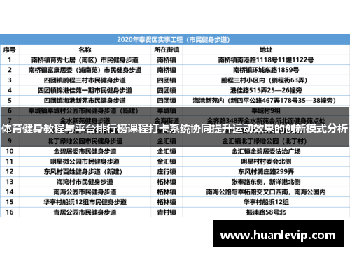 随着健身行业的发展,运动健身已逐渐成为现代人生活中不可或缺的一部分。而体育健身教程与平台排行榜课程打卡系统的协同,成为了提升运动效果的一种创新模式。通过结合科学的运动教程与技术化的打卡系统,用户能够更加科学、系统地进行运动训练,提升运动效果。本文将从四个方面对这一创新模式进行详细分析,分别是:体育健身教程与打卡系统的协同作用、平台排行榜对运动效果的激励作用、个性化数据分析与运动效果的精准提升以及技术平台的互动性与社交功能。每个方面都将从理论与实践相结合的角度,阐述如何通过这些创新模式有效提升运动效果。